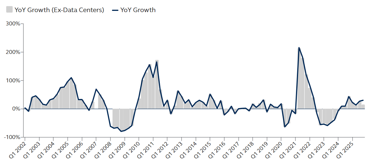 Transaction volumes are a useful barometer of market sentiment: accelerating activity typically reflects rising demand and confidence, while decelerating volumes point to growing caution. The market continues to face meaningful risks and uncertainties, but the recent pickup in transaction activity, reminiscent of the post-GFC recovery, is notable. It suggests the market may be reaching a similar inflection point, marked by returning confidence and renewed investor engagement.